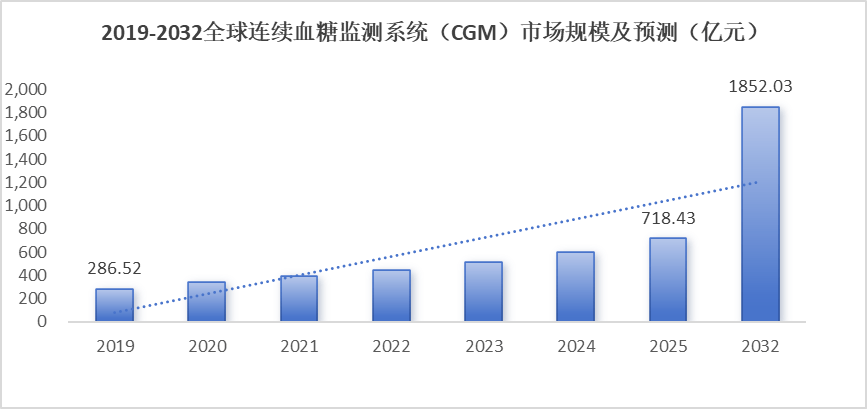 根据问可汇(WENKH)深度研究分析,在医疗技术不断革新的当下,连续血糖监测系统(CGM)作为糖尿病管理领域的关键技术,正经历着迅猛发展。2025年全球连续血糖监测系统(CGM)的市场规模达到718亿元,未来以14.49%的年复合增长率达到2032年的1852亿元。