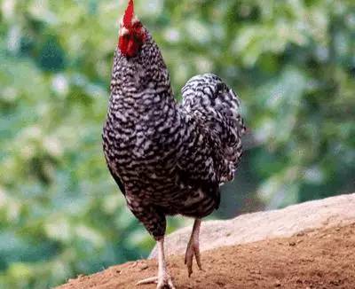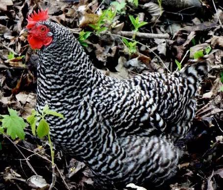 普利茅斯岩石鸡育成于美国新英格兰,由于羽色不同,分为横斑、白羽、浅黄、银纹、鹧鸪色、哥伦比亚色、蓝色7个品种。横斑洛克在我国常称芦花(洛克)鸡。横斑普利茅斯岩石鸡生长快,肉质好,易肥育,是公认的优质型鸡。