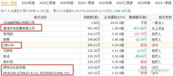主力持仓:在前十大流通股东中,2025年一季度北向资金重仓近970万股,三大QFII新进,瑞银集团、阿布扎比投资局和摩根士丹利,合计超630万股。