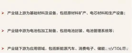 从产业链角度来看,上游包括基础材料及设备,包括原材料矿产、电芯材料和生产设备;中游为电池包加工制备,包括电池封装、电池管理系统等;下游则主要是固定电池的应用场景。